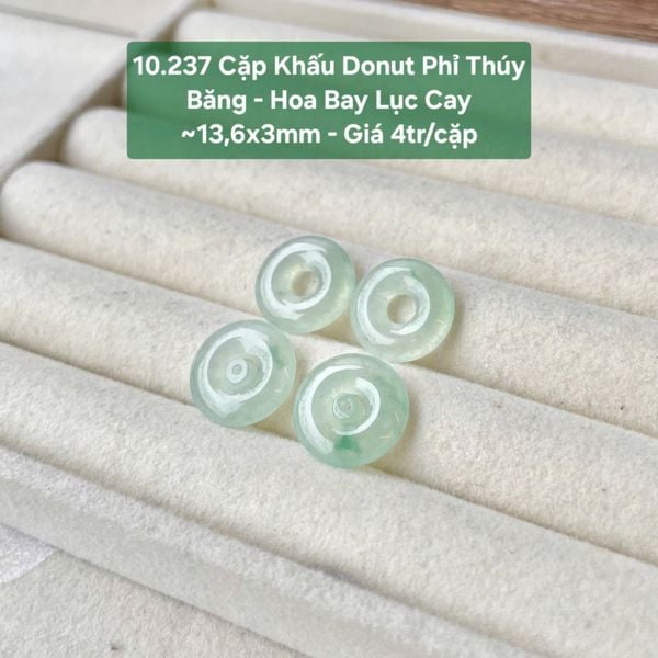Cặp Khấu Donut Phỉ Thuý Băng - Hoa Bay Lục Cay ~13,6x3mm 10.237