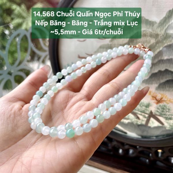 Chuỗi Quấn Ngọc Phỉ Thúy Nếp Băng – Băng – Trắng mix Lục ~5,5mm 14.568