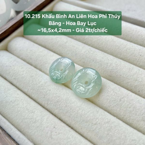 Khấu Bình An Liên Hoa Phỉ Thúy Băng - Hoa Bay Lục ~16,5x4,2mm 10.215