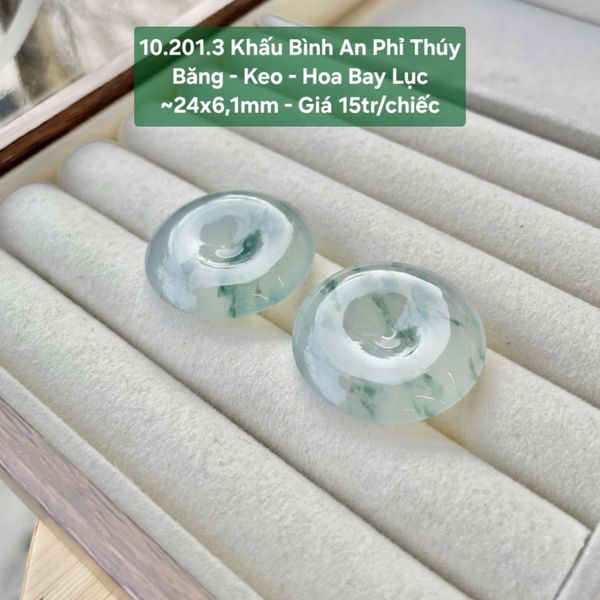 Khấu Bình An Phỉ Thúy Băng - Keo - Hoa Bay Lục ~24x6,1mm 10.201.3