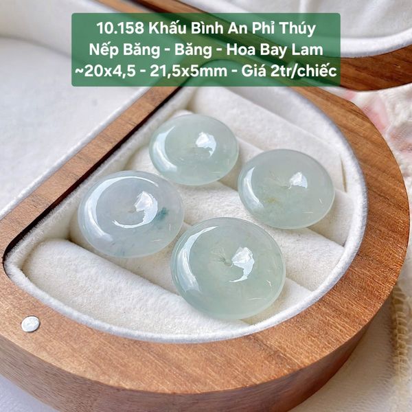 Khấu Bình An Phỉ Thuý Nếp Băng - Băng - Hoa Bay Lam ~20x4.5 - 21.5x5mm - 10.158