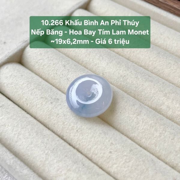 Khấu Bình An Phỉ Thuý Nếp Băng - Hoa Bay Tím Lam Monet ~19x6,2mm 10.266