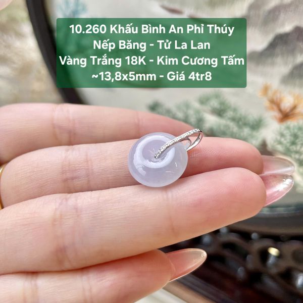 Khấu Bình An Phỉ Thúy Nếp Băng Tử La Lan - Vàng Trắng 18K Kim Cương Tấm - ~13,8x5mm10.260