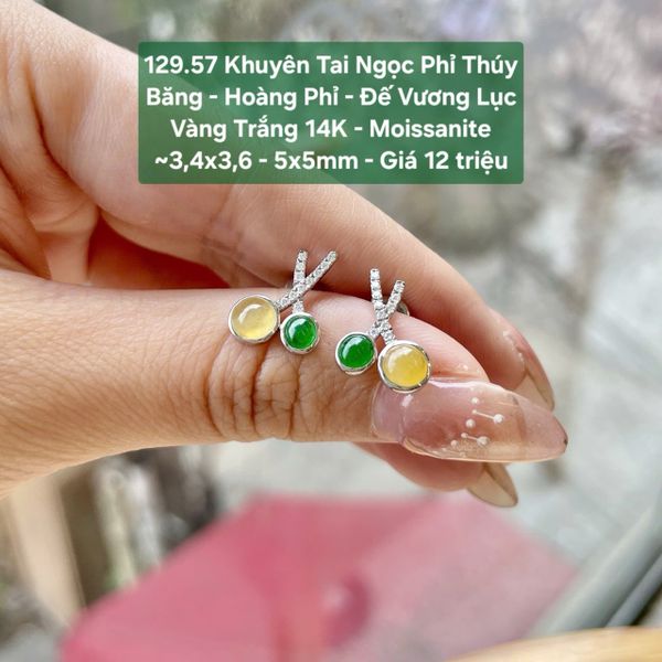 Khuyên Tai Ngọc Phỉ Thúy Băng - Hoàng Phỉ - Đế Vương Lục VT 14K - Moissanite ~3,4x3,6 - 5x5mm 129.57