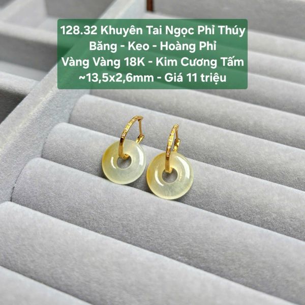 Khuyên Tai Ngọc Phỉ Thúy Băng - Keo - Hoàng Phỉ Vàng Vàng 18K - Kim Cương Tấm 128.32