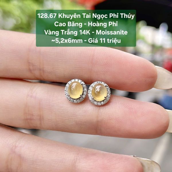 Khuyên Tai Ngọc Phỉ Thúy Cao Băng - Hoàng Phỉ Vàng Trắng 14K - Moissanite ~5,2x6mm 128.67