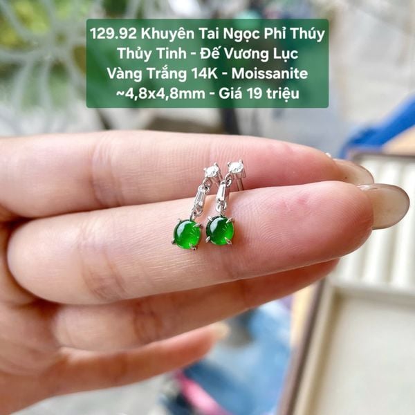 Khuyên Tai Ngọc Phỉ Thúy Thủy Tinh - Đế Vương Lục VT14K – Moissanite ~4,8x4,8mm 129.92