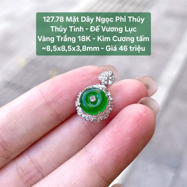 Mặt Dây Ngọc Phỉ Thúy Thủy Tinh - Đế Vương Lục Vàng Trắng 18K - Kim Cương tấm ~8,5x8,5x3,8mm 127.78