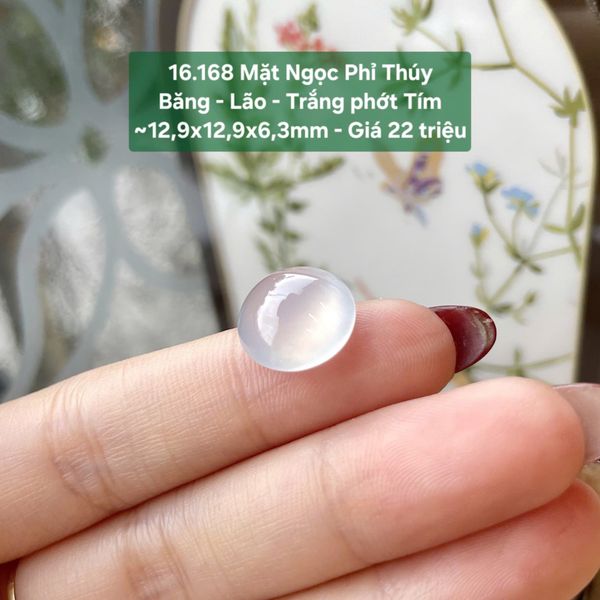 Mặt Ngọc Phỉ Thuý Băng - Lão - Trắng Phớt Tím ~12,9x12,9x6,3mm 16.168