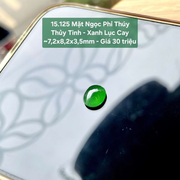 Mặt Ngọc Phỉ Thúy Thủy Tinh - Xanh Lục Cay ~7,2x8,2x3,5mm 15.125