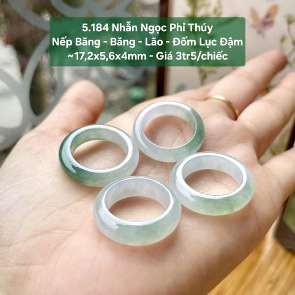 Nhẫn Ngọc Phỉ Thúy Nếp Băng - Băng - Lão - Đốm Lục Đậm ~17,2x5,6x4mm 5.184
