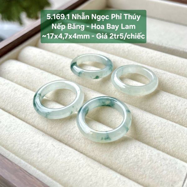 Nhẫn Ngọc Phỉ Thuý Nếp Băng - Hoa Bay Lam ~17x4,7x4mm 5.169.1