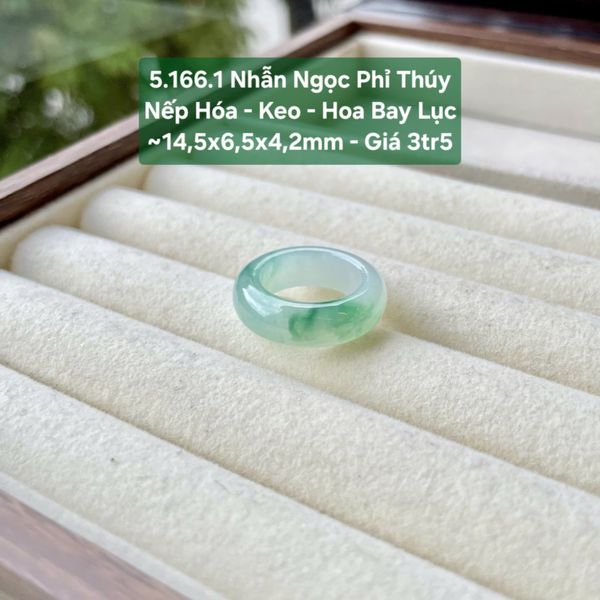 Nhẫn Ngọc Phỉ Thuý Nếp Hoá - Keo - Hoa Bay Lục ~14,5x6,5x4,2mm 5.166.1
