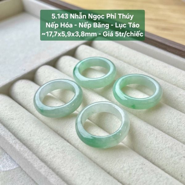 Nhẫn Ngọc Phỉ Thúy Nếp Hóa - Nếp Băng - Lục Táo ~17,7 x5,9x3,8mm 5.143