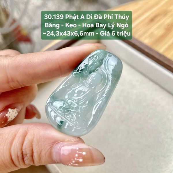 Phật A Di Đà Phỉ Thúy Băng - Keo - Hoa Bay Lý Ngò ~24,3x43x6,6mm 30.139