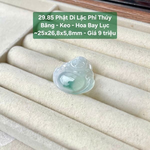 Phật Di Lặc Phỉ Thúy Băng Keo - Hoa Bay Lục - ~25x26,8x5,8mm29.85