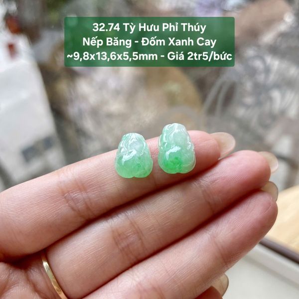 Tỳ Hưu Phỉ Thúy Nếp Băng - Đốm Xanh Cay ~9,8x13,6x5,5mm 32.74