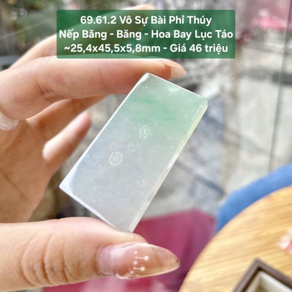 Vô Sự Bài Phỉ Thuý Nếp Băng - Băng - Hoa Bay Lục Táo~25.4x45,5x5,8mm 69.61.2