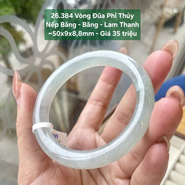 Vòng Đũa Phỉ Thúy Nếp Băng - Băng - Lam Thanh ~50x9x8,8mm 26.384
