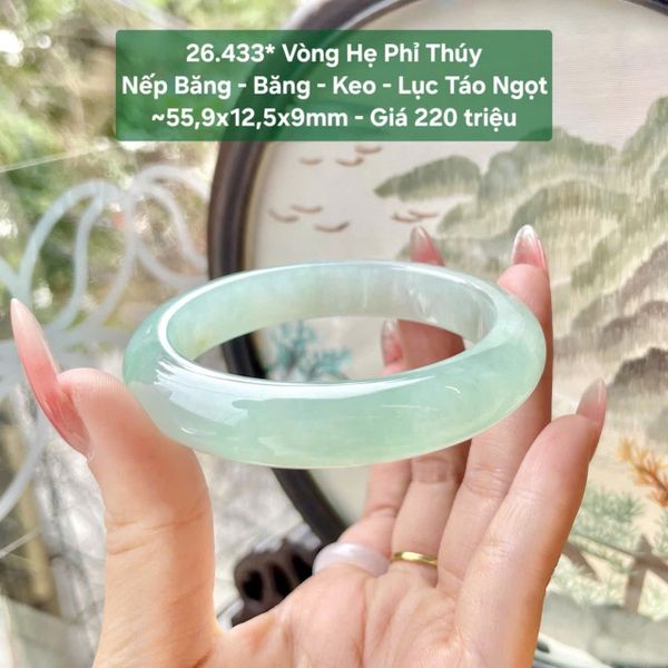 Vòng Hẹ Phỉ Thuý Nếp Băng - Kẹo - Lục Táo Ngọt ~ 55,9x12,5x9mm 26.433*