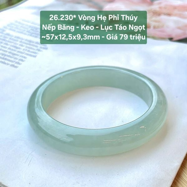 26.230* Vòng Hẹ Phỉ Thúy Nếp Băng - Keo - Lục Táo Ngọt ~57x12,5x9,3mm