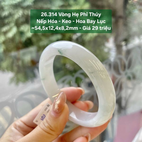 Vòng Hẹ Phỉ Thúy Nếp Hóa - Keo - Hoa Bay Lục ~54,5x12,4x8,2mm 26.314