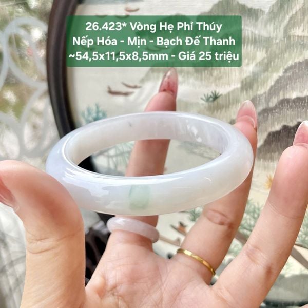 Vòng Hẹ Phỉ Thúy Nếp Hóa - Mịn - Bạch Đế Thanh ~54,5x11,5x8,5mm 26.423*