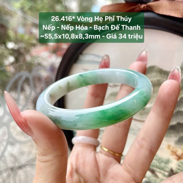 Vòng Hẹ Phỉ Thuý Nếp- Nếp Hoá - Bạch Đế Thanh ~55,5x10,8x8,3mm 26.416*