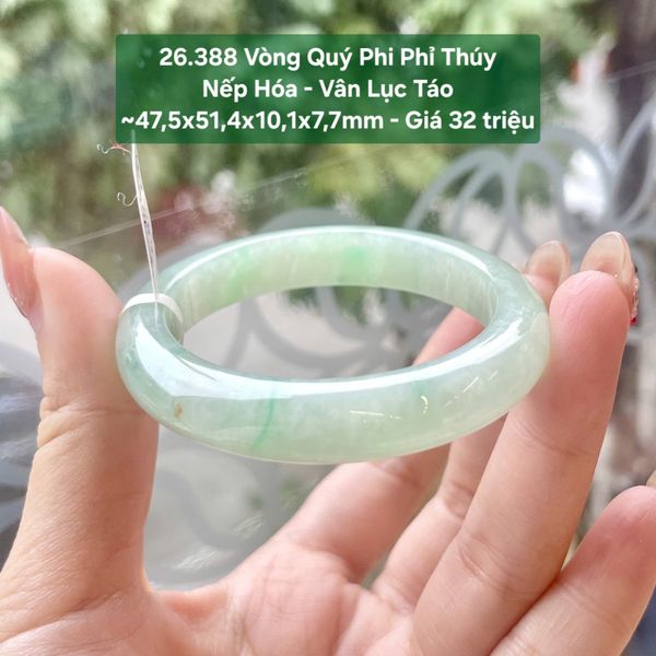 Vòng Quý Phi Phỉ Thúy Nếp Hóa - Vân Lục Táo ~ 47,5x51,4x10,1x7,7 mm 26.388