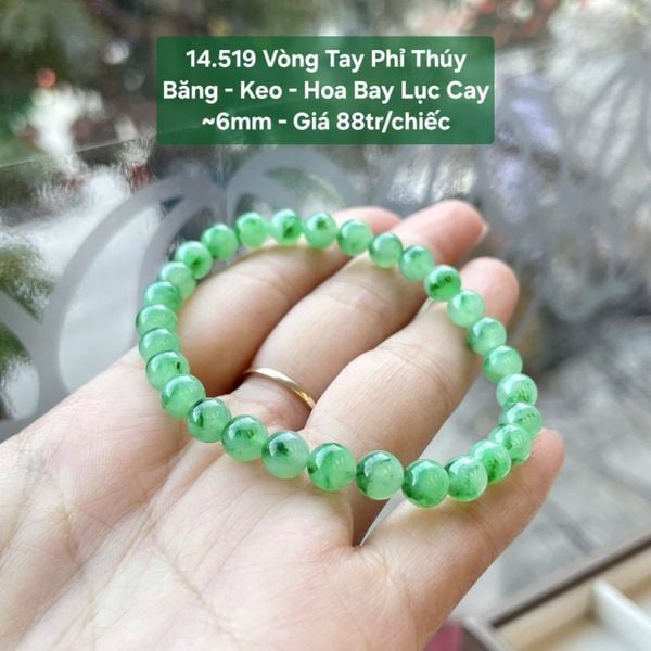 Vòng Tay Phỉ Thúy Băng - Keo - Hoa Bay Lục Cay ~6mm 14.519