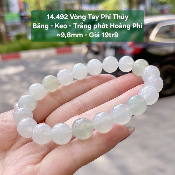 Vòng Tay Phỉ Thúy Băng - Keo - Trắng phớt Hoàng Phỉ 14.492