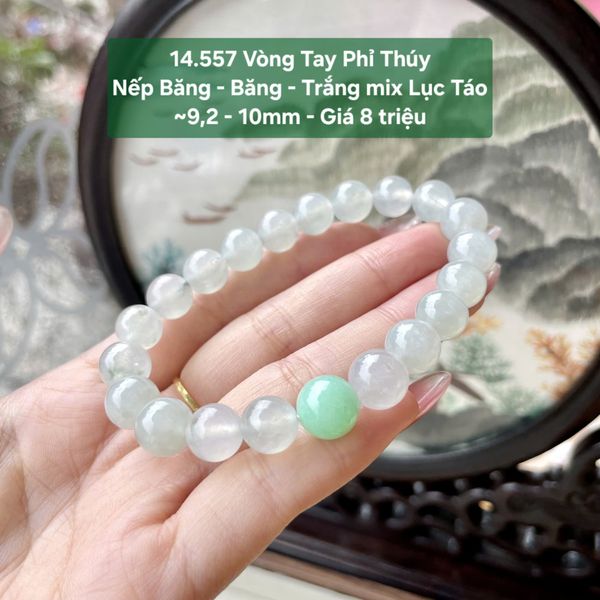 Vòng Tay Phỉ Thúy Nếp Băng Băng - Trắng mix Lục Táo - ~9,2 - 10mm14.557